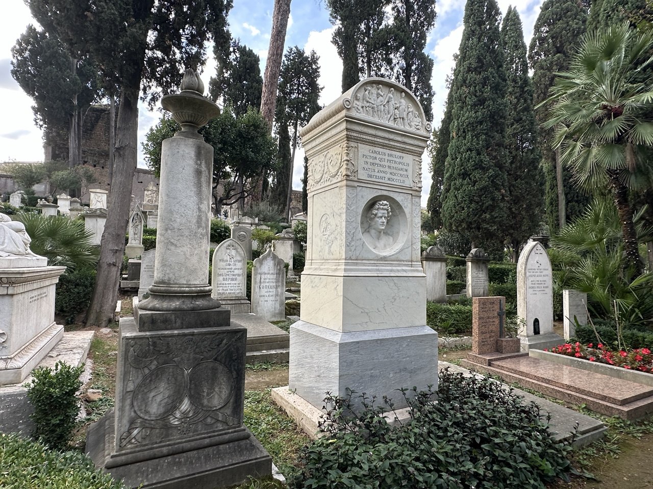 Одно из самых интересных, хоть и печальных мест в Риме — некатолическое кладбище в районе Тестаччо. Кладбище, официально учрежденное в 1821 года, управляется советом из 14 иностранных послов, проживающих в Риме. Здесь похоронены все не католики, которые умерли в городе начиная с 19 века.